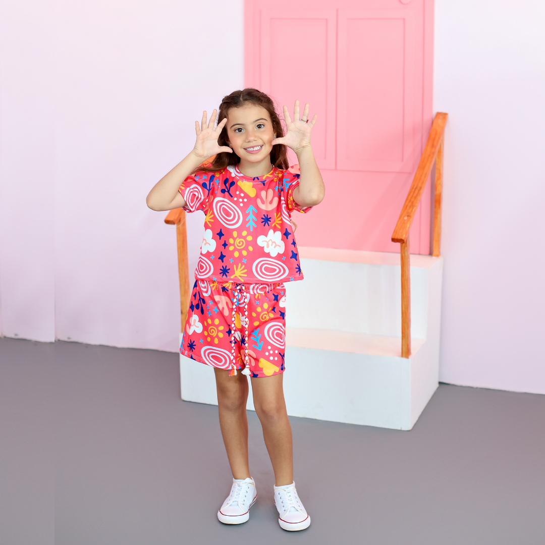 O conjunto é o pacote completo, oferecendo conforto, leveza e muita elegância para qualquer que seja o evento, sendo ótimo tanto para ser utilizado em ocasiões mais divertidas e despojadas, como para ser utilizado em ocasiões mais sérias, uma vez que as suas cores e estampas são super alegres e deixam a sua criança fofa e super bem vestida.